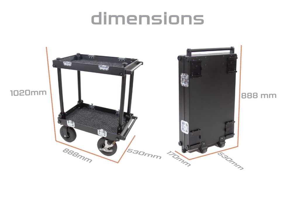 Il carrello a due piani SMARTONE MICRO può essere utilizzato per il trasporto di attrezzature o come carrello del reparto audio. Abbiamo applicato materiali durevoli per affrontare le condizioni difficili, i pneumatici sono realizzati con gomma a 4 strati posizionati su robusti cerchi in acciaio dotati di 2 freni manuali a pedale con regolazione della forza per un percorso sicuro e sicuro sulla maggior parte delle superfici, la struttura in alluminio è leggera e sostenuta abbastanza per sostenere fino a 200 chilogrammi, non sono necessari strumenti per attaccare o rimuovere ogni ruota o qualsiasi parte del carrello, ciò ti fa risparmiare tempo.